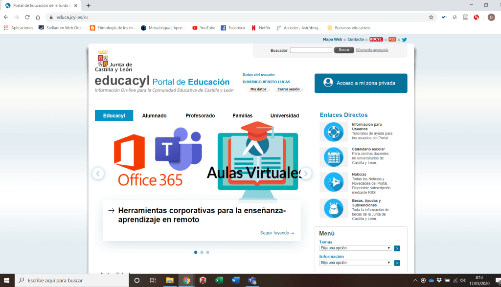 Durante estos días de cuarentena (ya hablaremos de qué es la cuarentena y por qué hay que hacerla), vamos a utilizar una aplicación que tenemos disponible con nuestro usuario y contraseña de Educacyl: Microsoft Teams.