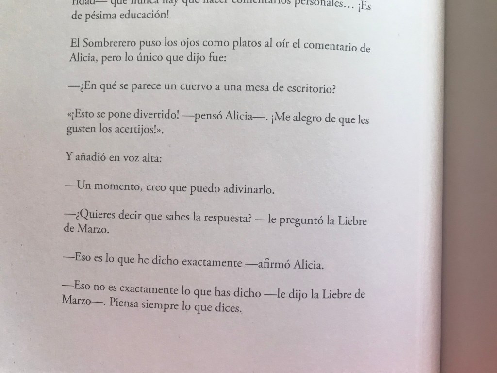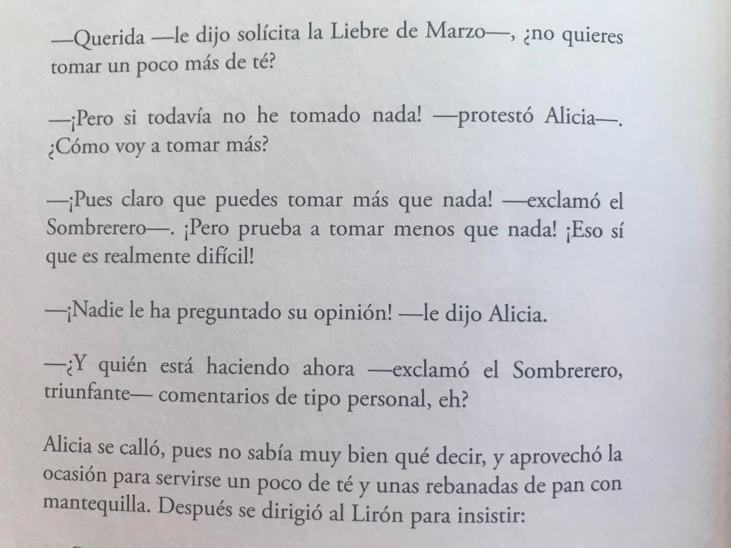 «- ¿Por qué te gusta Alicia en el país de las maravillas? – preguntó Alba con inquietud.
